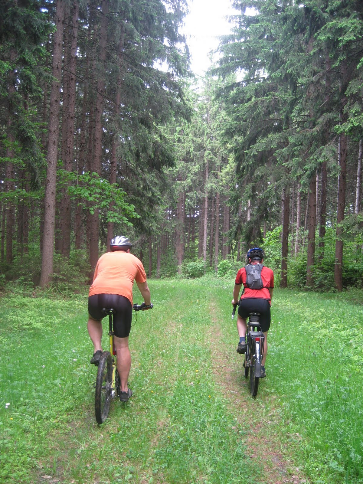 Got out on the Fargo on Sunday with Wendi & Fred and road the fire roads at Hi-Tor. The first down hill was a bit scary as as the steam had come a bit loose and there was a bit of slop in the front end, lots of vibration any time I used the front breaks. We stopped in a beautiful section of pine forest for some photos, but the bugs where to thick to fix the bike. we took a casual pace as this was Freds first big ride of the year. We stopped for lots of photos, partial to fill Fred's facebook page and partially for the My Fargo Adventure Blog. We started at brinks road, went over ot the Basset Rd parking lot, over to the Canandaigua lake over look, down the hill to he big pond and then back up and to the car.